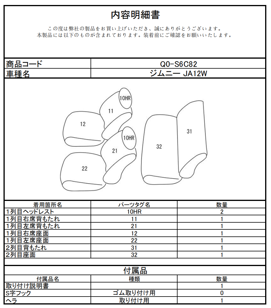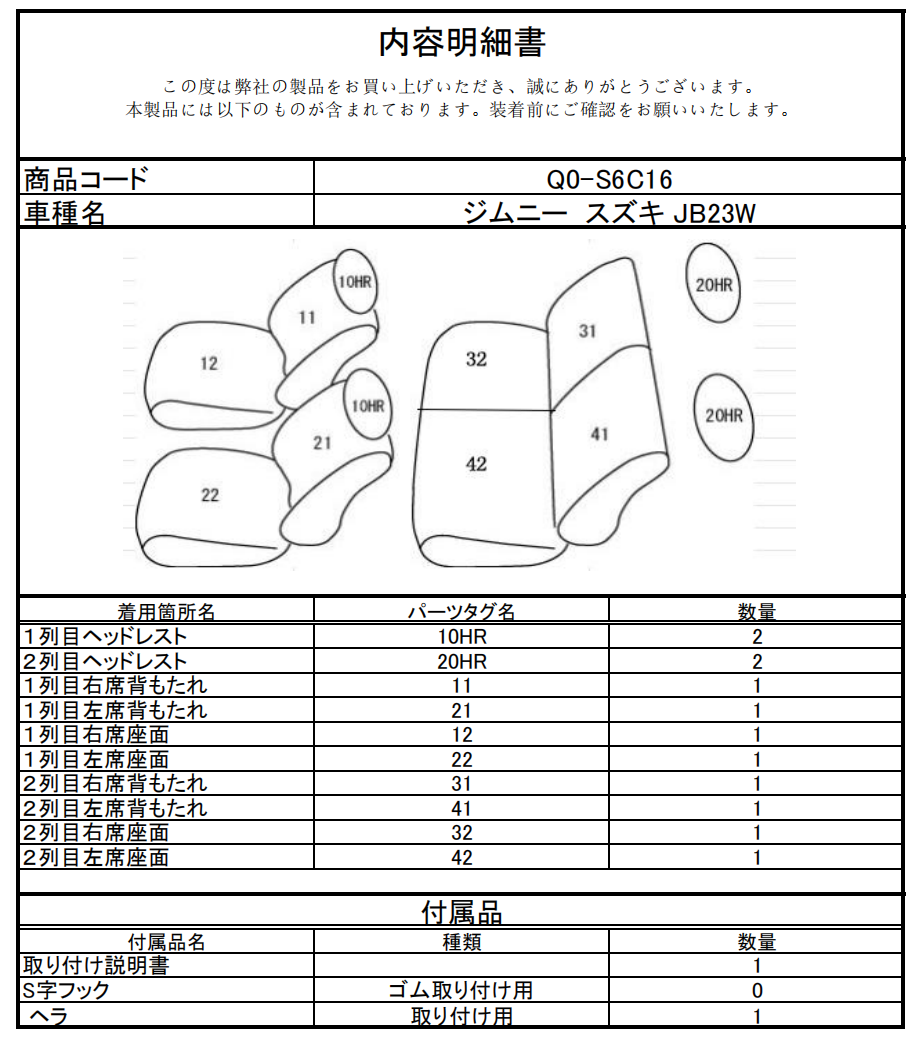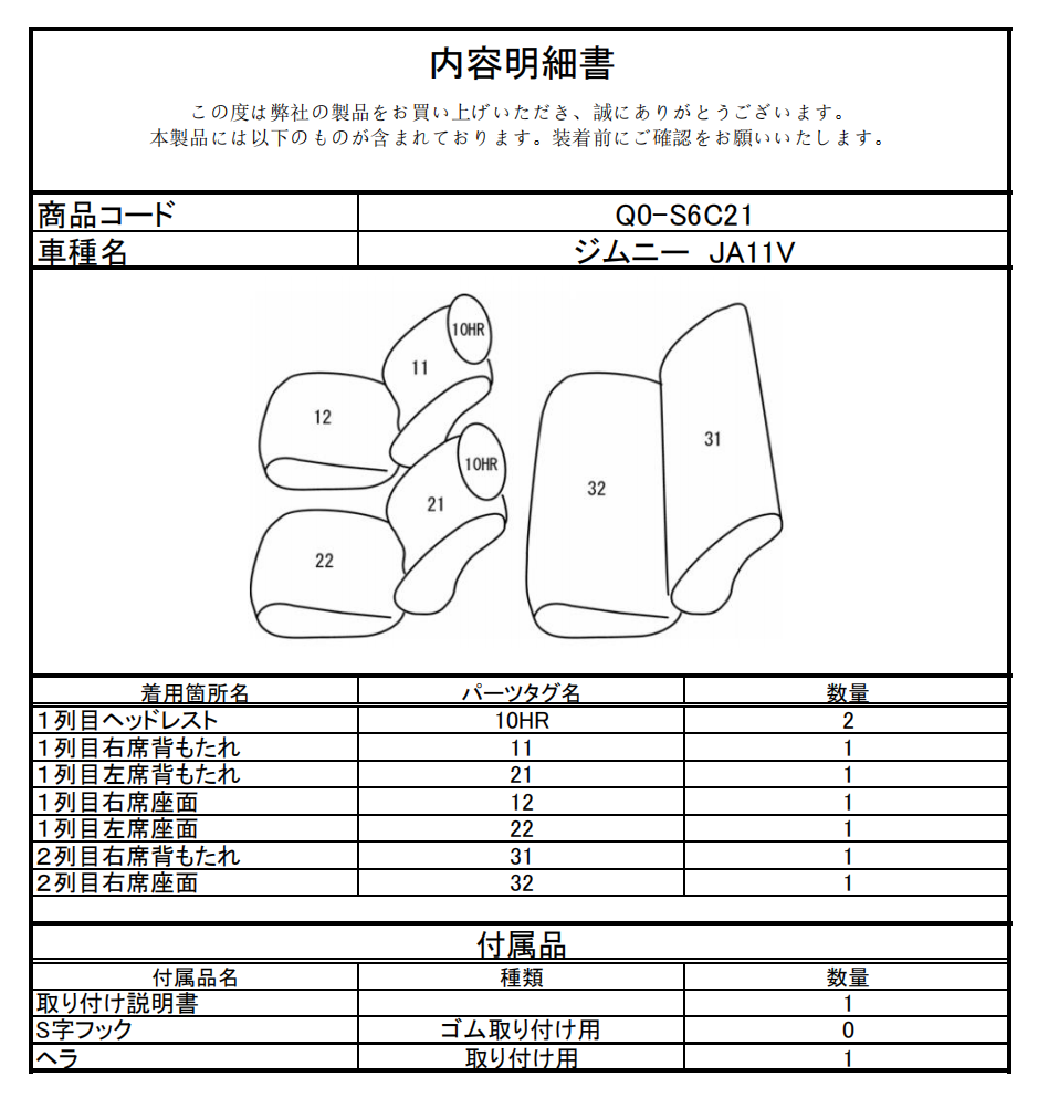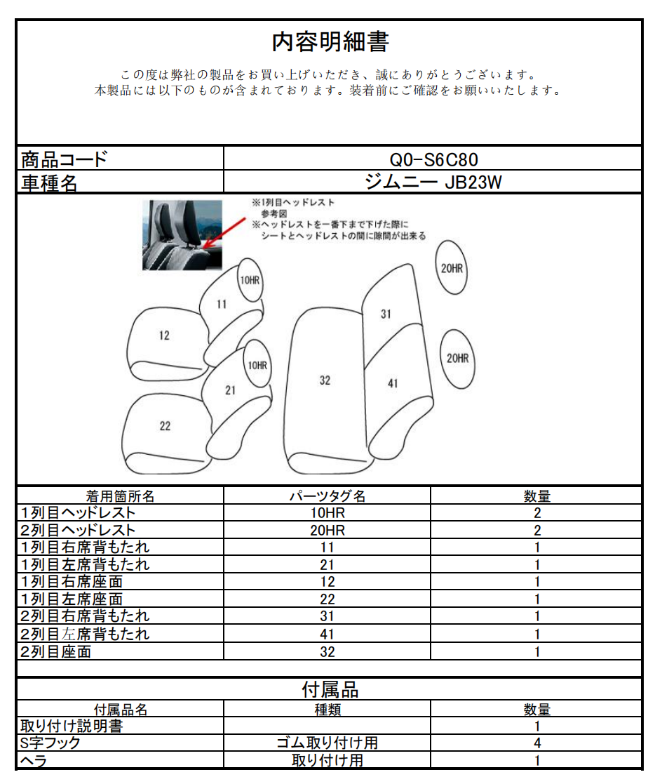 シートカバーのご注文時には、こちらの「品番」をご指定ください。