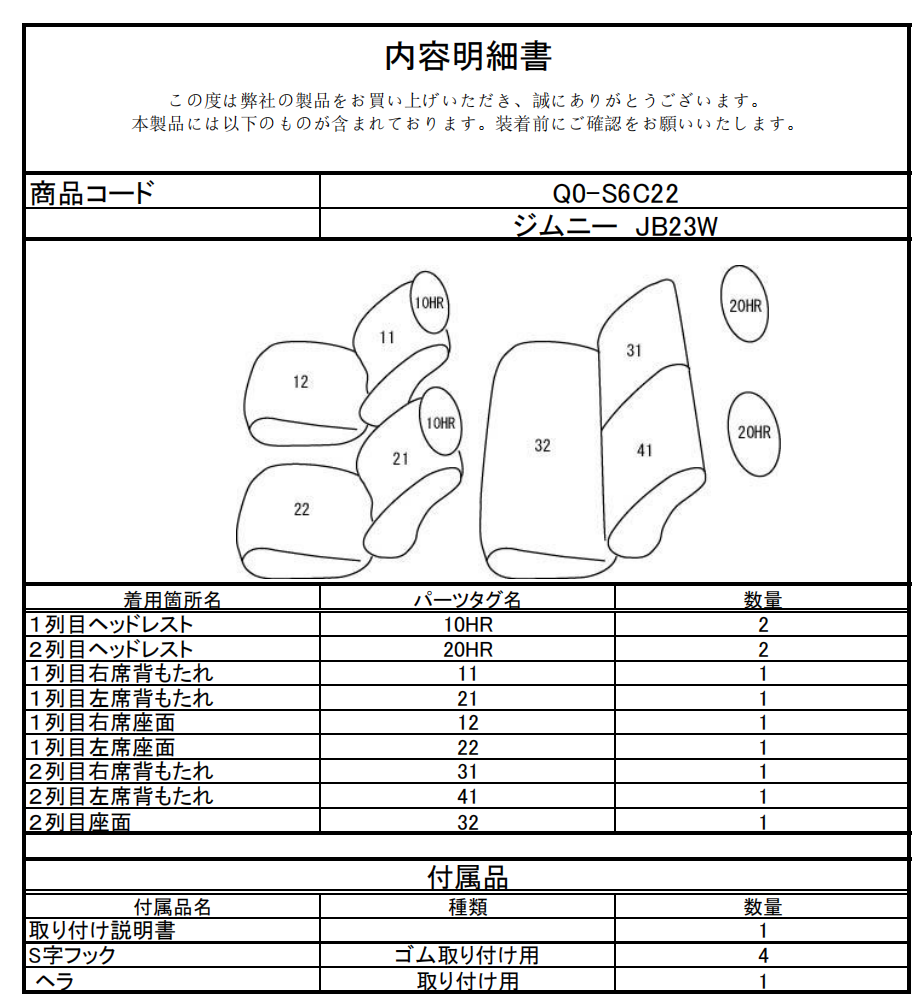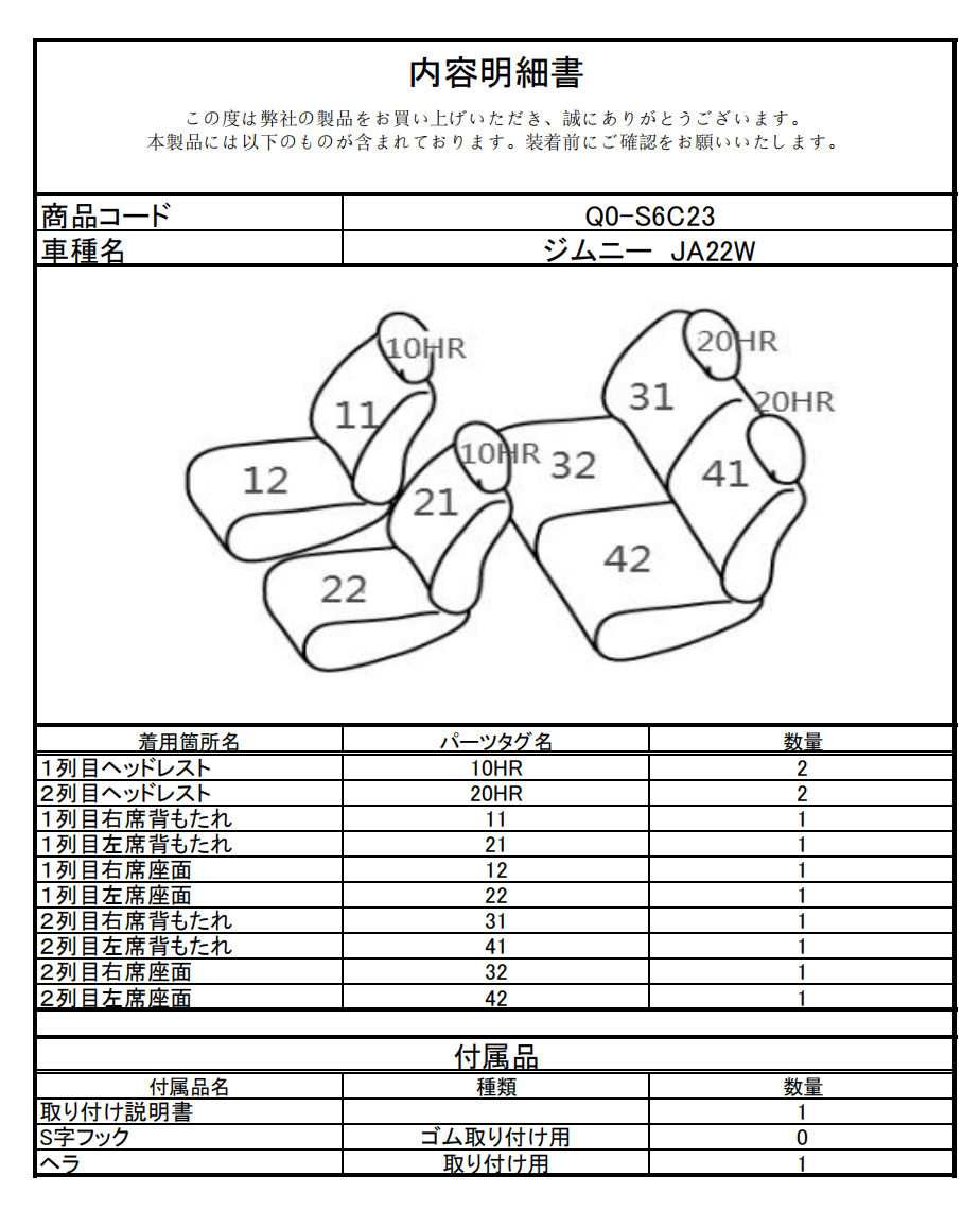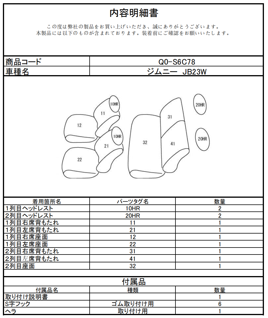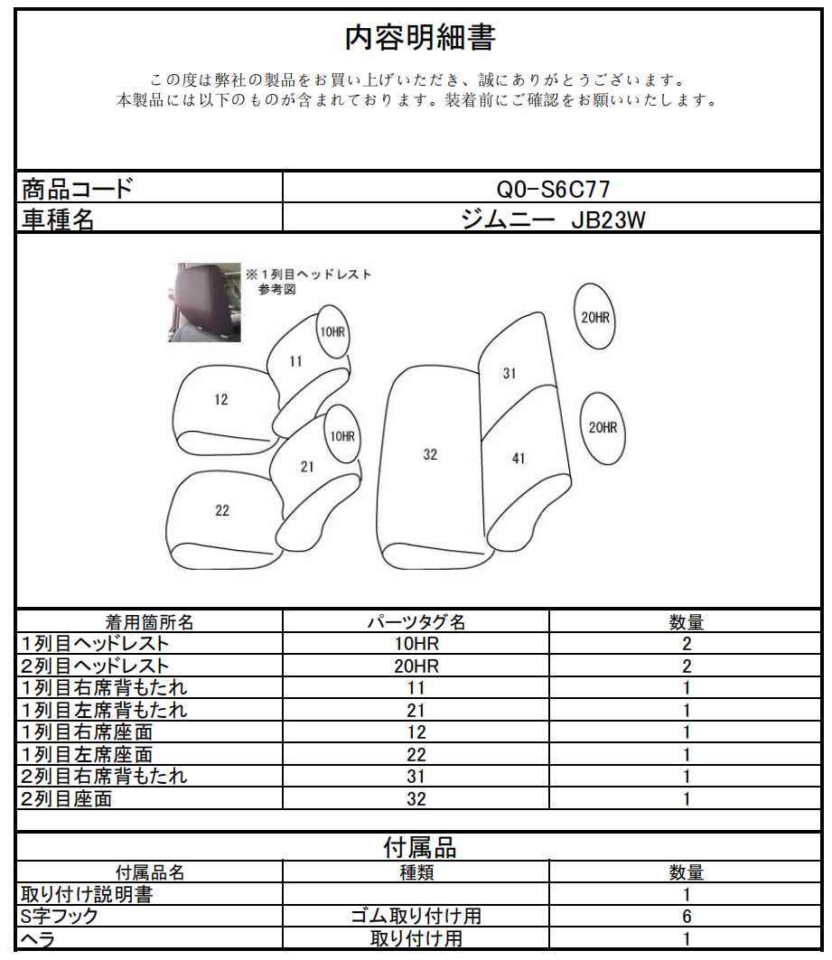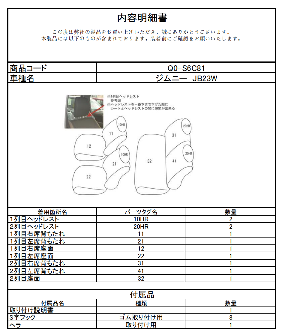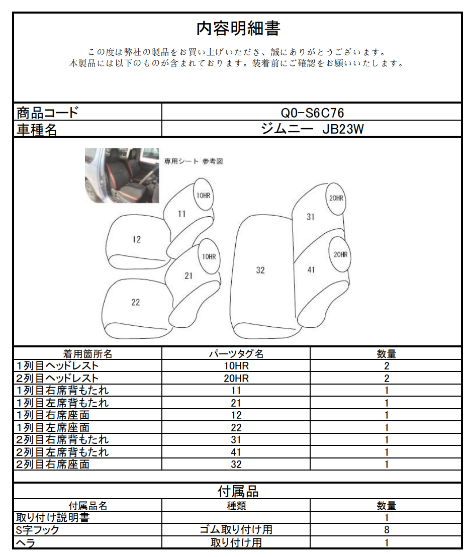 シートカバーのご注文時には、こちらの「品番」をご指定ください。